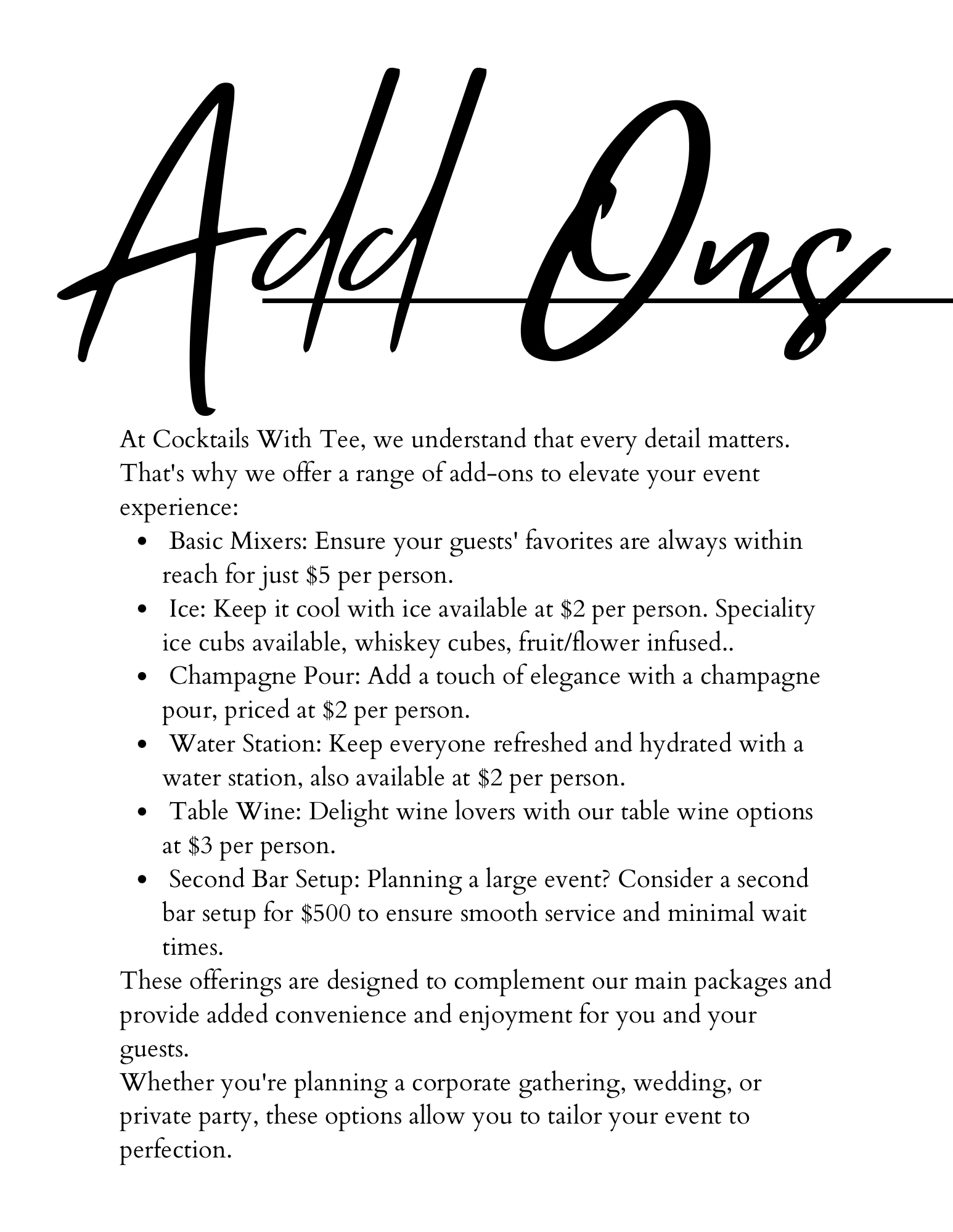 At Cocktails With Tee, we bring the bar to you—stylish, seamless, and unforgettable.