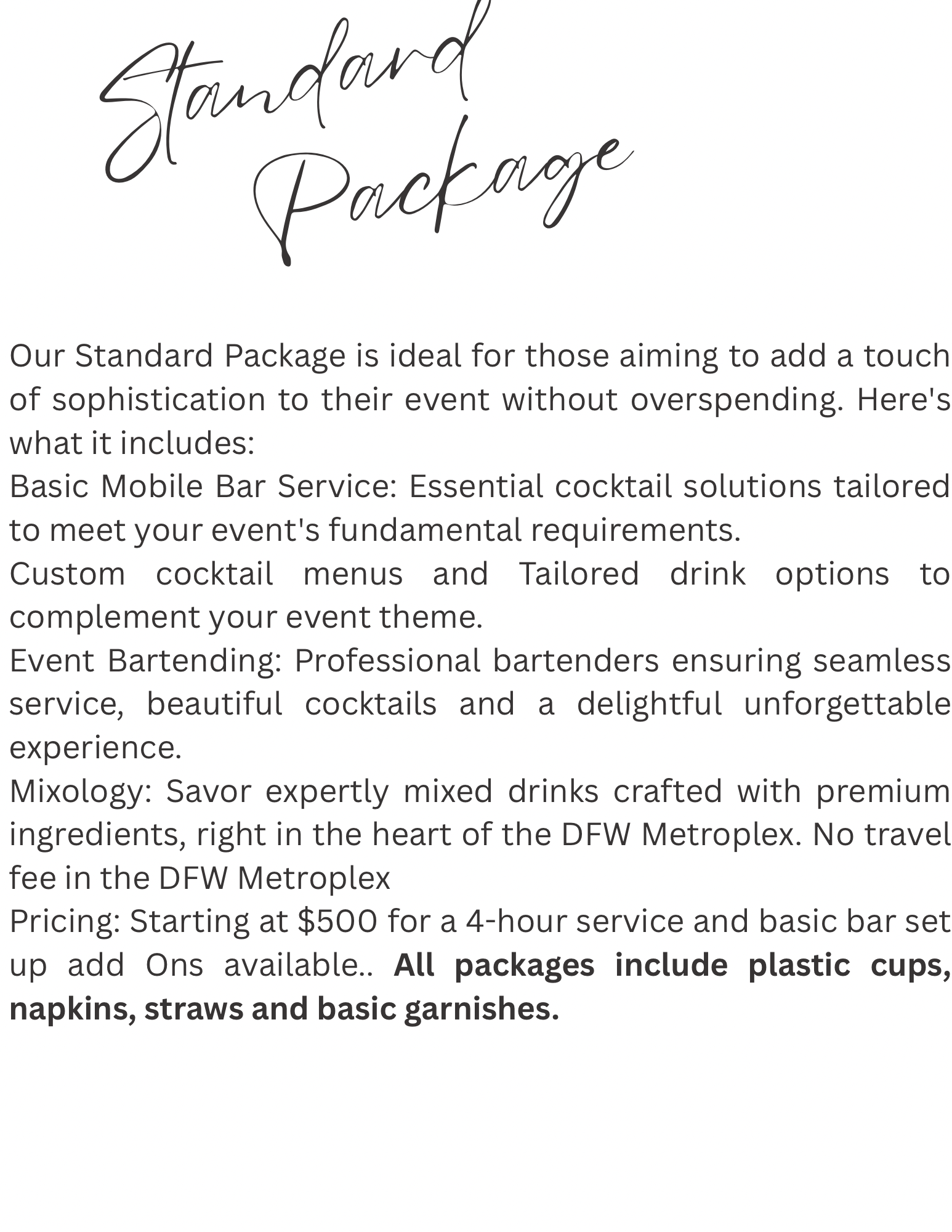 ✔ Professionally trained, licensed bartenders